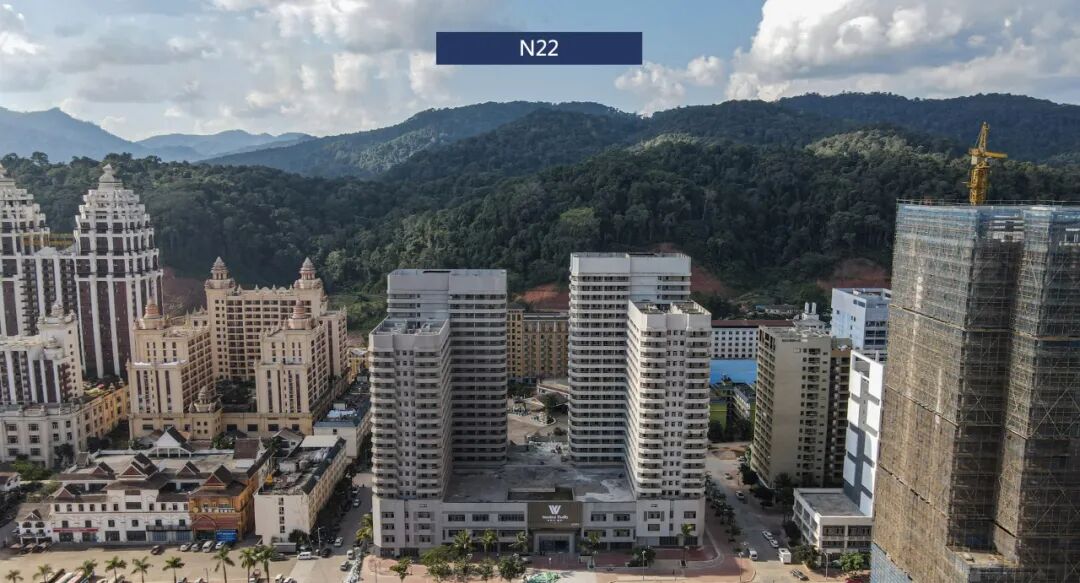 N18-2:主体已封顶,裙楼外墙抹灰完成,9-10层外墙完成40%;B栋剩余主体炮楼结构完成50%,12-13层内墙抹灰完成40%