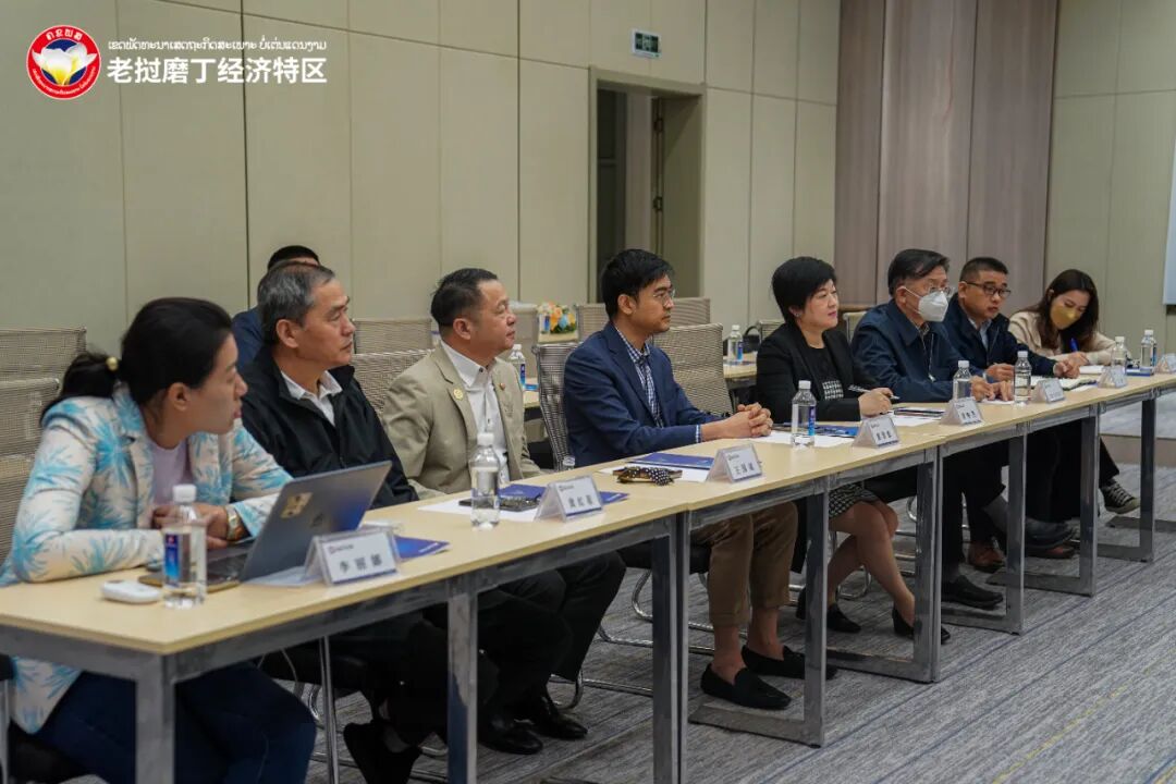 泰国OA国际控股集团此次到访磨丁,意在寻求未来双方合作的可能性。磨丁特区的旅游产业与免税服务是OA集团来访的主要目的,它可依托自身服务优势打通老挝旅游市场,以磨丁构建平台,抓住未来来自中老双边的大量客源市场,助推特区商贸旅游发展。随后,泰国OA国际控股集团与泰国华人投资总商会及美国罗框控股集团来访领导与磨丁特区开发集团组织召开了座谈会议,双方就投资合作意向建设进行了深入洽谈。老挝磨丁经济特区管委会主席周昆率特区招商局、磨丁景兰免税相关负责人参会,并就后续合作进行细节的商定,为考察团答疑解惑,争取信息对等与合作共识。