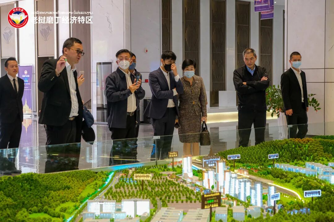 当天,泰国OA国际控股集团董事长廖偉豪一行人抵达磨丁经济特区,率先参观了磨丁国际保税物流园区LICD查验货场,系统性的了解磨丁物流板块的运作模式及磨丁与中老铁路的联运模式。随后,考察组先后前往了磨丁货运通道、磨丁湖、盐井湖、南通村、景兰免税店等项目地进行参观。最后,在接待负责人的引领下,考察组前往磨丁经济特区城市规划展示中心参观,现场工作人员通过磨丁战略区位、特区政策、产业布局、招商政策、建设历程等多个方面向其详细介绍。参观结束,廖偉豪董事长和CEO谢春花对特区的整体发展模式表示了肯定,廖偉豪董事长说:磨丁经济特区是中老两国合作关系下的重要结晶,在两国贸易往来中发挥巨大力量,特区的产业布局具有国际标准,也具有国际竞争的能力,其中,国际旅游和免税贸易方面有着独到的优势,特别是面向中国市场来说,这样的优势更加具有吸引力。