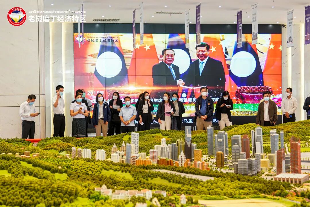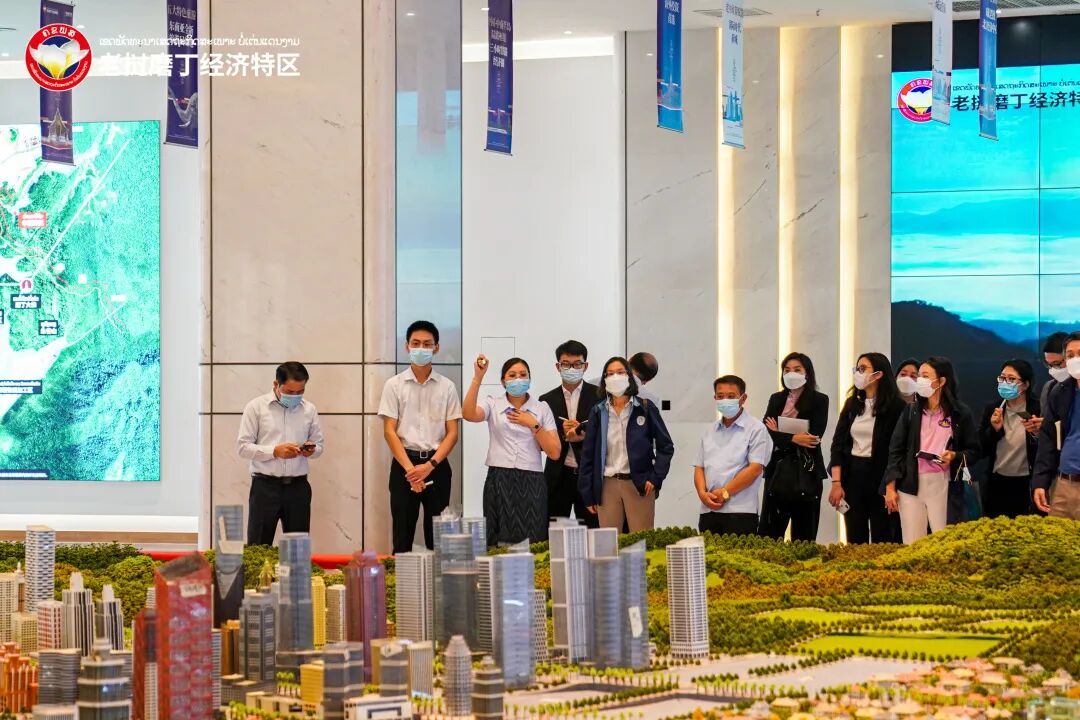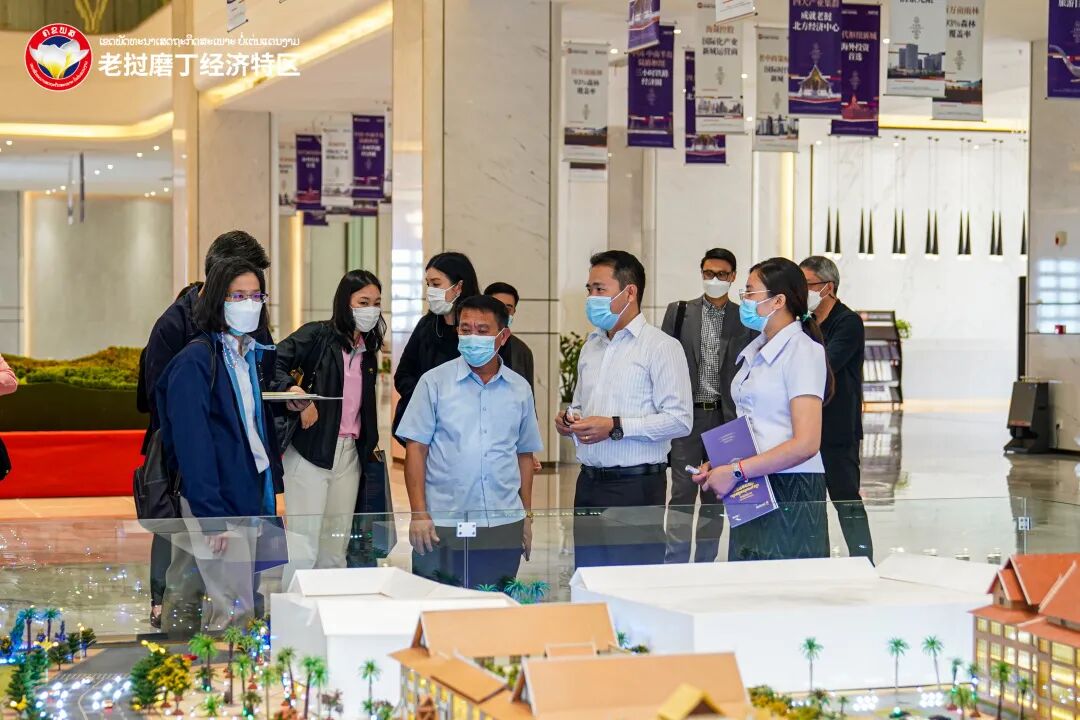 上午,阿嘉丽司长一行乘车抵达磨丁经济特区,在相关领导的陪同下参观磨丁城市规划展示中心,在参观过程中,阿嘉丽·惜拉达娜班司长对老中磨丁-磨憨经济合作区有了全新认知,经过特区开发集团工作人员的讲解之后,阿嘉丽司长对特区产业规划及地理区位展现出极大兴趣,在与工作人员的交流中,她发表了自己对磨丁的理解:她认为磨丁经济特区处在老中边界处,老中铁路和规划中的老中高速公路均从需从磨丁出入,相较其他口岸更有优势,磨丁目前是中南半岛各国用老中铁路与中国贸易的必经通道,随着老挝铁路运输路网的版图扩大,磨丁将在老挝、泰国、马来西亚三国与中国外贸中展现自身影响力。