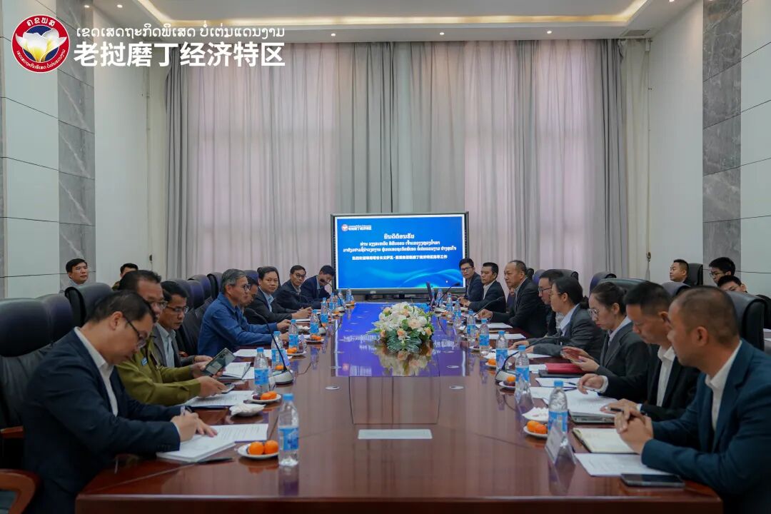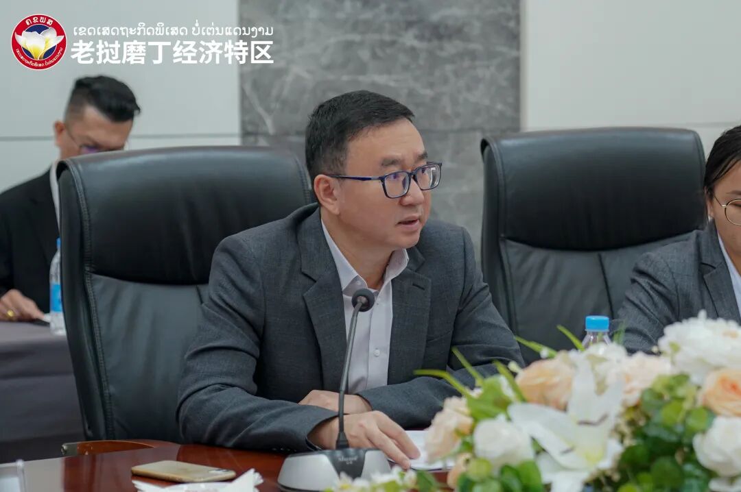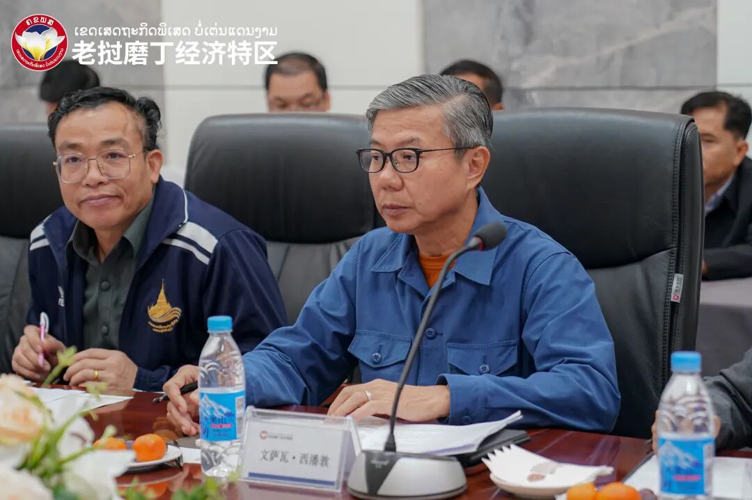 会议上,磨丁经济特区管委会主席周昆向文萨瓦·西潘敦省长详细汇报了开发集团自2012年全面接手特区开发运营后的发展情况,并就老中磨丁-磨憨经济合作区成立以来磨丁的产业调整、建设进度、发展布局、招商引资等工作进行重点阐述。周昆提到:2023年特区发展将进入新阶段,随着两国口岸恢复互通,口岸进出人流自中国农历新年假期后不断刷新纪录,超过了2019年疫前日均流量,省政府应同特区一道把握发展时机,快速启动磨丁-磨憨经合区老方区域围网工程,并着力推进磨丁-磨憨口岸服务升级改造工程。