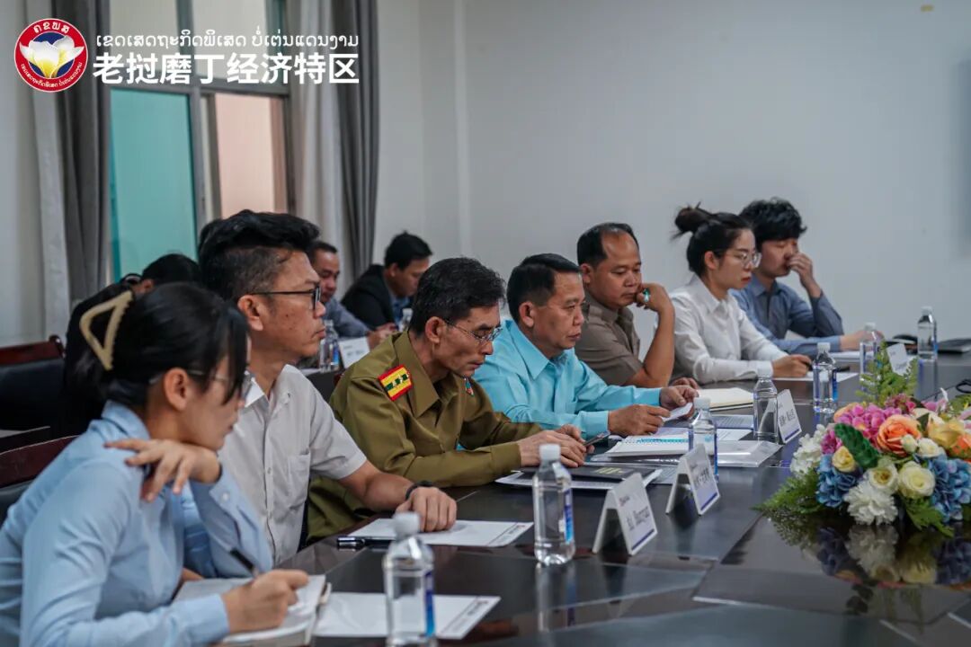 下午,代表团一行与琅南塔政府工作组、省经济特区管委会、磨丁特区开发集团召开交流会议。会议内容围绕磨丁经济特区的发展展开讨论,此次的交流,皆是在推进中老磨憨-磨丁经济合作区向高质量发展建设水平靠近,加强双方开对话,引入标杆特区项目参观学习,也为更好地助力南部特区在制定政策和选择产业布局投资项目方面提供专业意见。