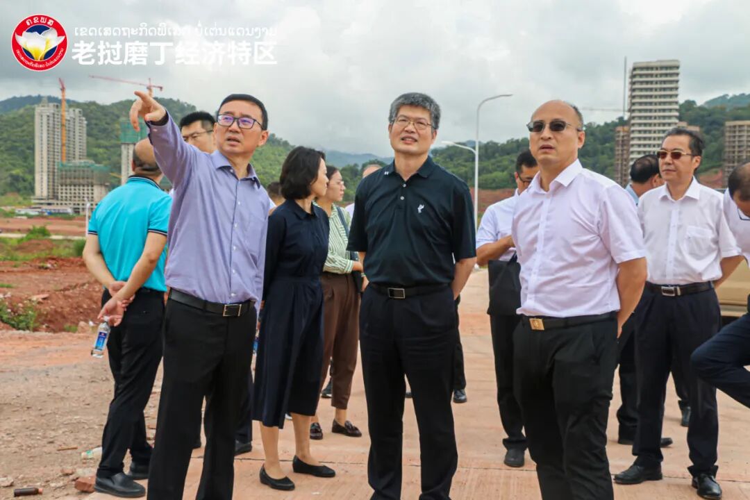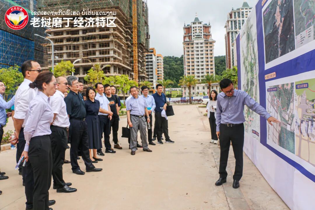 在中老磨憨—磨丁经济合作区,调研组实地考察磨憨中方围网区、磨丁特区管委会、老挝13号公路磨丁段、磨丁火车站、铁路口岸入境联检厅等,现场调研合作区建设及规划情况、铁路公路口岸通关现状及扩建计划,深入了解老方有关合作需求,老挝磨丁经济特区管委会主席、海诚控股董事长周昆陪同讲解。
