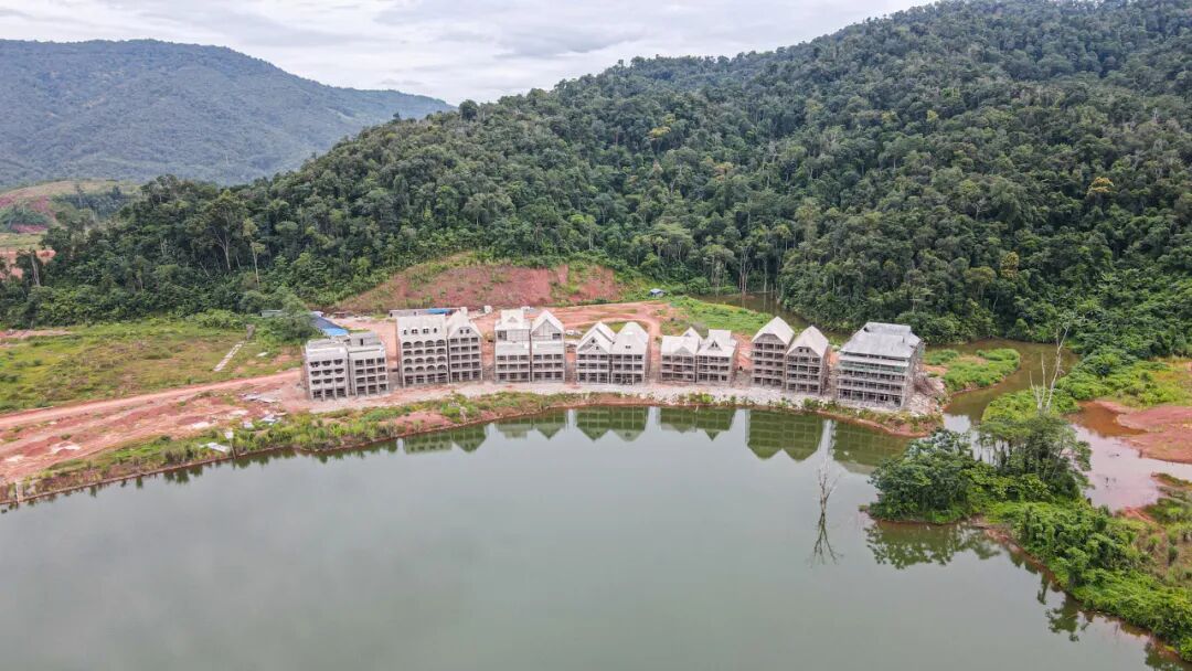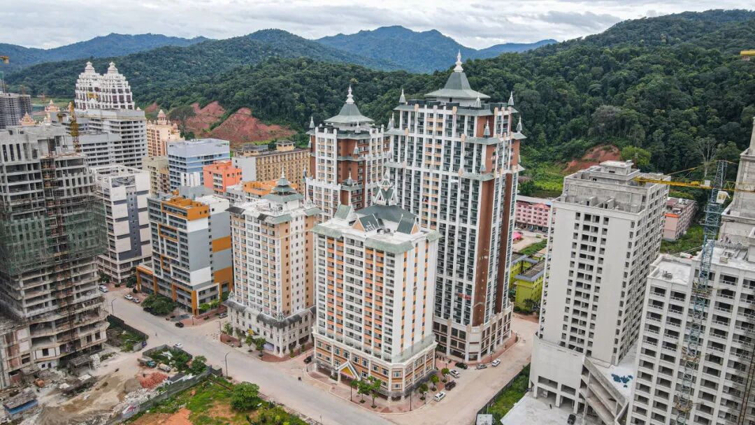 S6-S12正在进行内外墙收尾,外墙涂料腻子施工中,室外工程及道路工程施工中