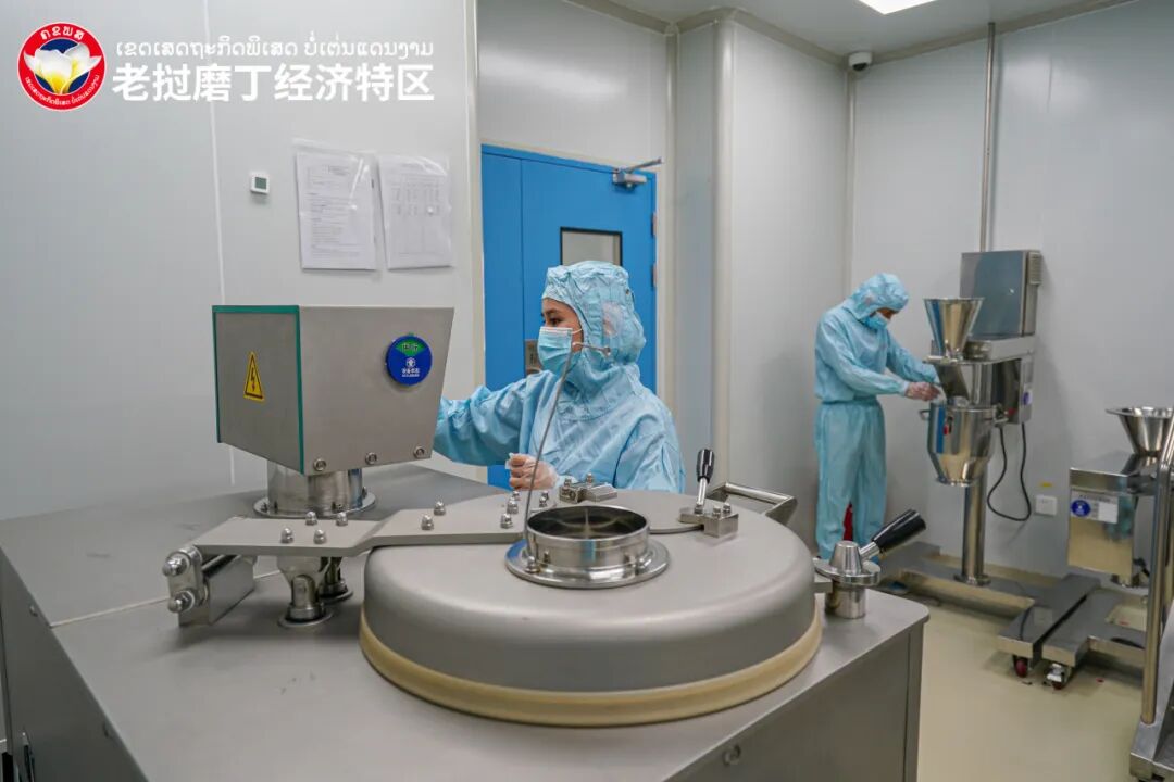 位于磨丁的厂房占地面积1500平方米,日均生产胶囊50万颗,片剂药品20万粒,药品销往中国与东南亚各国市场,借助磨丁便捷的交通网络使药品快速送达至患者手中。