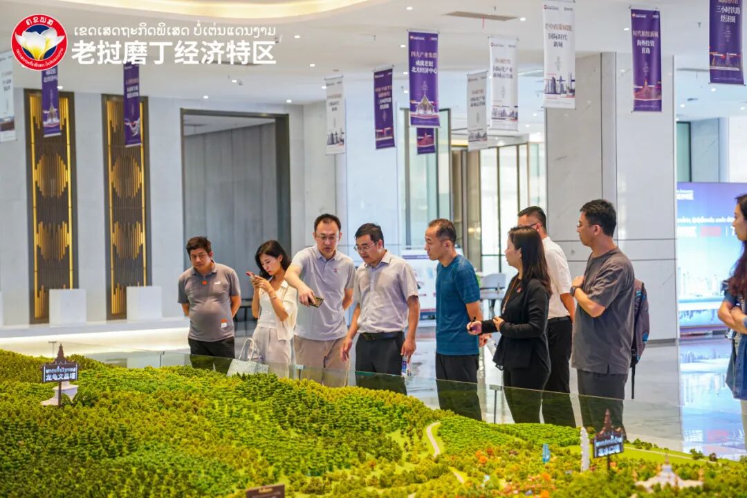 8月13日,中国工商银行万象分行领导到访老挝磨丁经济特区,在磨丁开发集团融资中心、招商局领导陪同下参观了规划展示中心、物流园区、两湖文旅片区、免税商场,对磨丁产业分布、发展现状、金融政策有了初步了解,双方就金融服务建设问题进行交流。分行领导此次到访磨丁,充分肯定了磨丁开发集团的实力与特区的发展前景,表示将密切关注磨丁经济特区的发展,寻找商机,进一步增进交流,共谋发展。