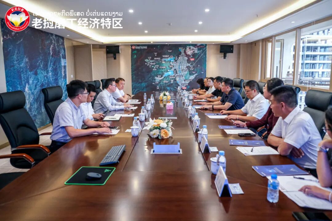 2023年10月5日,云南省西双版纳州勐腊县党政代表团到访老挝磨丁经济特区,磨丁经济特区管委会主席、云南海诚集团董事长周昆与磨丁开发集团投资、招商、规划设计等部门负责人热情接待并陪同参观,双方召开合作发展座谈会。