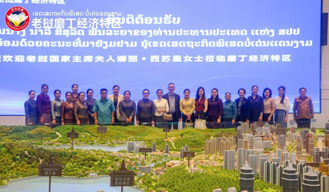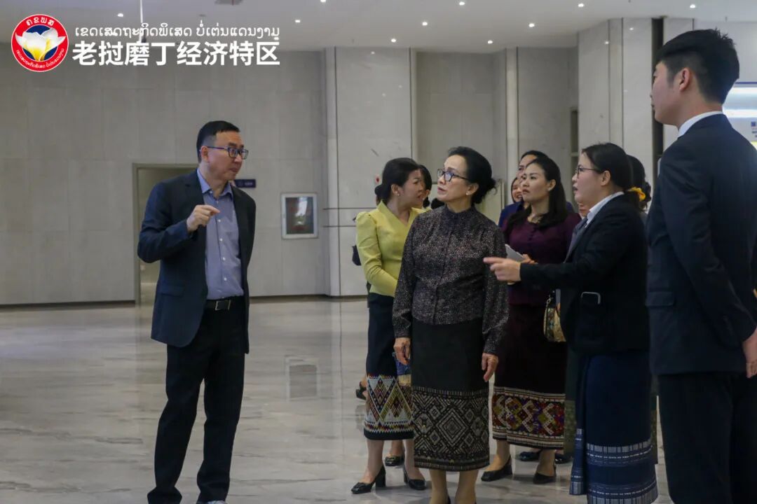 10月22日,老挝国家主席夫人娜丽·西苏里一行莅临磨丁经济特区参观访问,老挝磨丁经济特区管委会主席、海诚控股董事长周昆与磨丁开发集团各部门负责人热情接待并陪同参观。