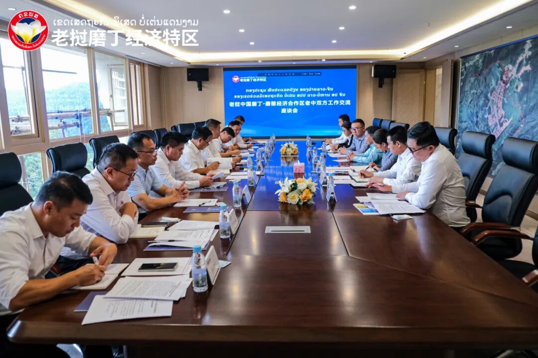 结束实地考察后,双方召开座谈会。会议上,磨丁经济特区介绍了老中磨丁-磨憨经济合作区老方区域围网工程、口岸升级改造、老挝13号公路磨丁段等基础设施建设项目情况,双方就强化合作区老中双边产业合作、促进老中铁路沿线发展等积极建言献策,并就相关事宜达成一致共识。