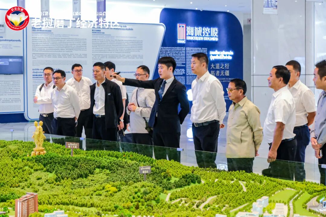 老挝中国磨丁-磨憨经济合作区中方管理委员会代表团先后参观磨丁经济特区规划展示中心、合作区老方围网工程、货运通道、一站式服务中心、ICD货场、国际保税物流加工园区、两湖文旅片区、免税商场等地点,实地走访医疗产业、旅游产业、金融产业入驻企业,调研磨丁建设情况、口岸通关现状及改扩建计划、各产业发展概况。