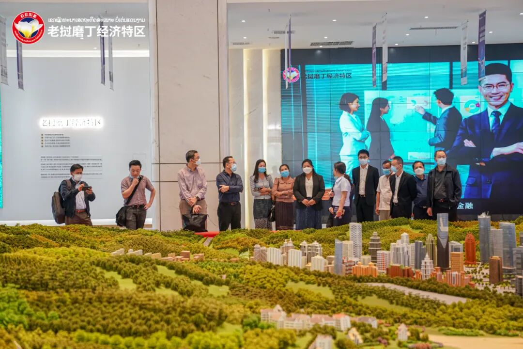 在参观过程中,特区工作人员向来访人员对磨丁发展历程及不同领域产业布局进行了一系列介绍。磨丁经济特区依托区位和政策优势打造的四大产业,行业之广,种类之全,涵盖了金融服务、跨境贸易、国际运输 、健康与制药、文化旅游、电信行业及战略性新兴产业等多个对外发展领域项目,对通讯基建发展及新型科技产品实验培育有广阔前景。