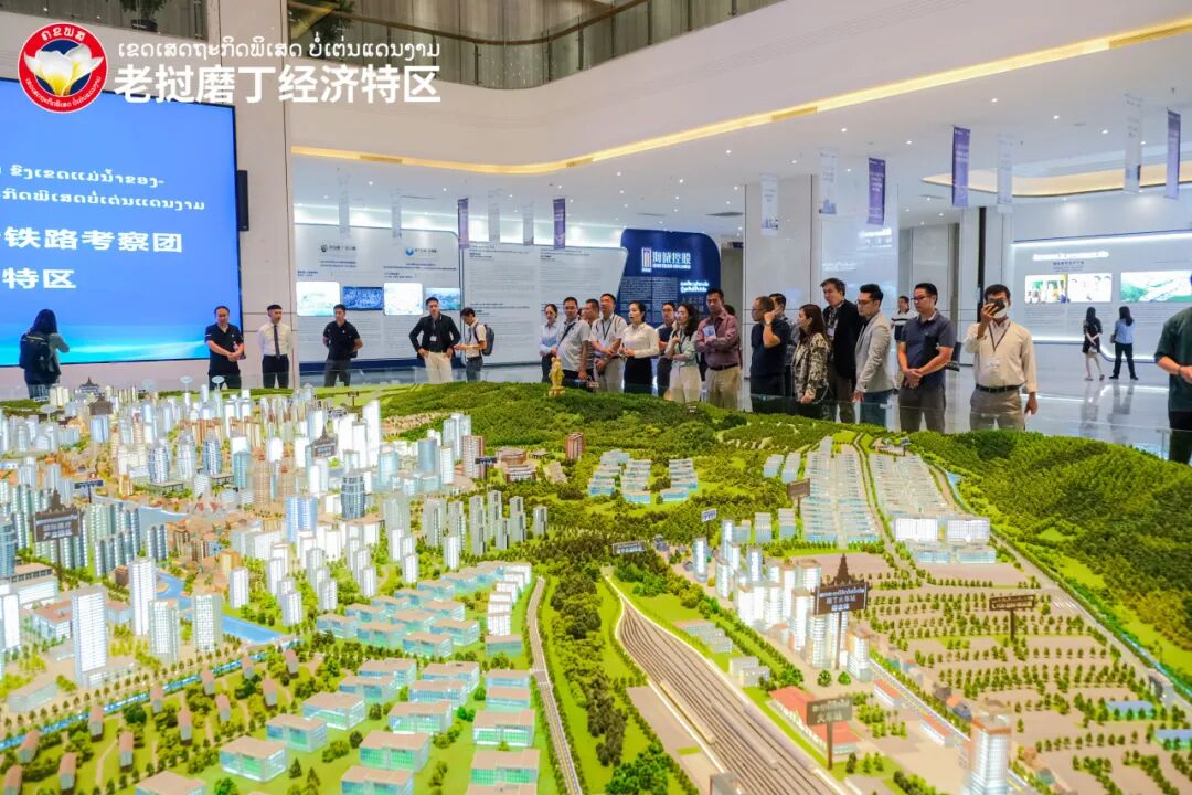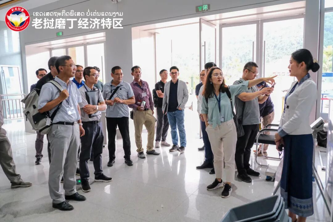考察团依次走访规划展示中心、老中铁路磨丁站、ICD货场、免税商场等地点,对老中磨丁-磨憨经济合作区历史沿革,磨丁四大产业规划、开发建设进度、招商引资概况进行了解,重点围绕客货运情况、物流服务体系建设情况开展调研工作。双方就老中铁路建成通车带来的挑战与机遇进行交流。