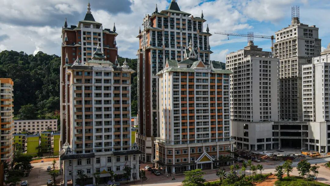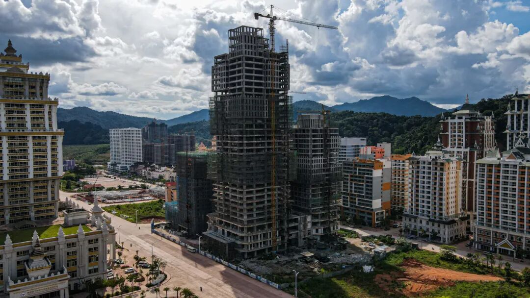 N09地块A、B、C塔主体均已封顶,外墙抹灰砌体完成。