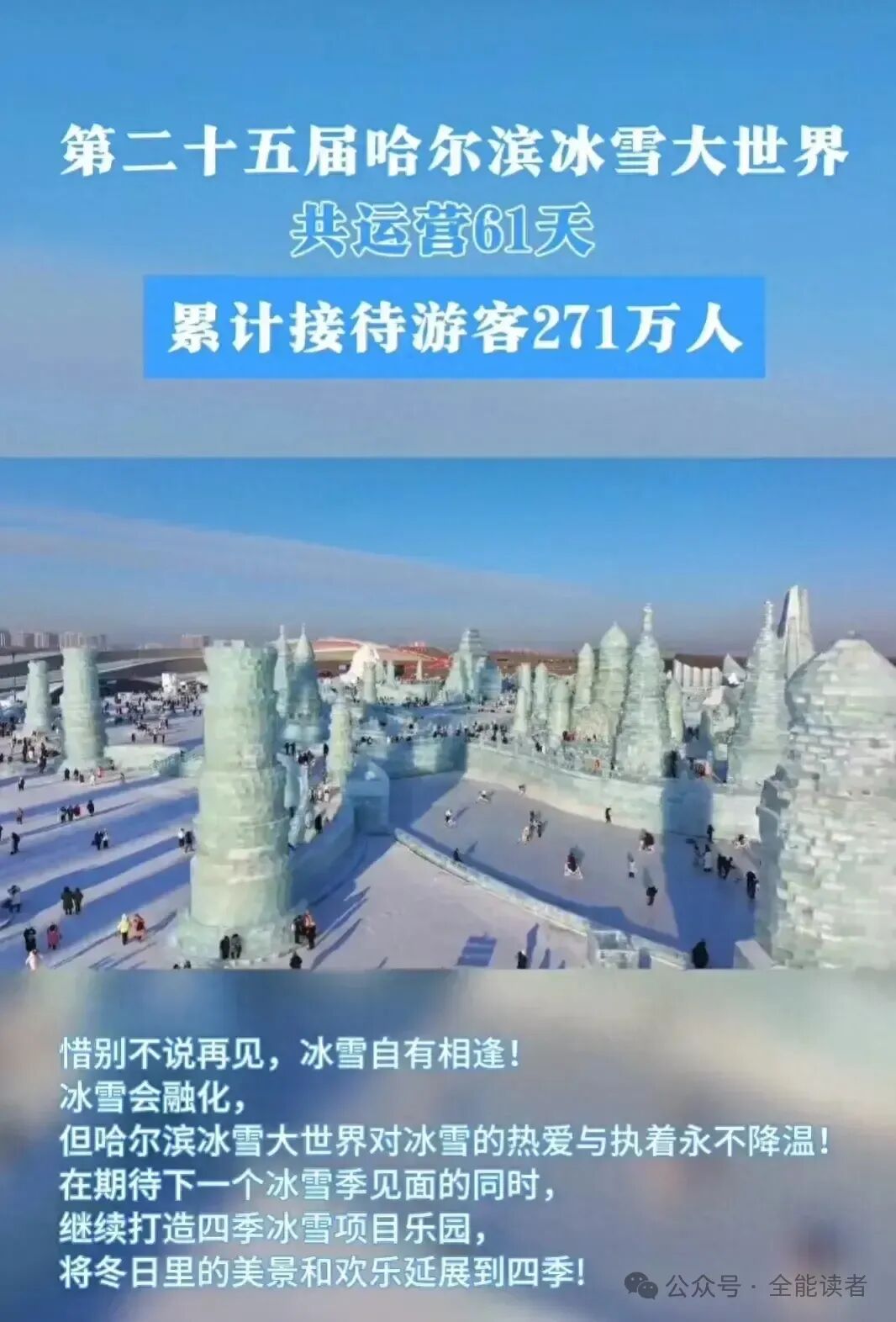 在长达61天的运营期间,冰雪大世界共接待了超过271万名游客,圆满结束的同时也再一次展现了其作为世界顶级冰雪乐园的无限魅力。