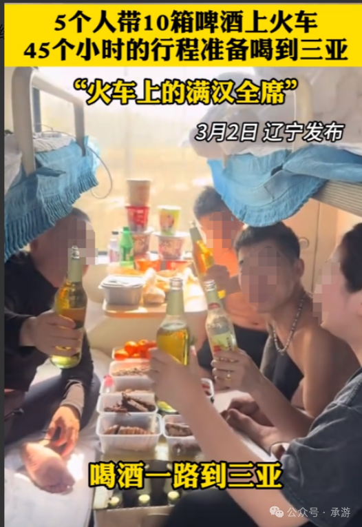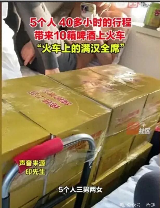 这群喜欢喝酒的老铁,带着十箱啤酒上火车,的确是一件十分不可思议的事情。