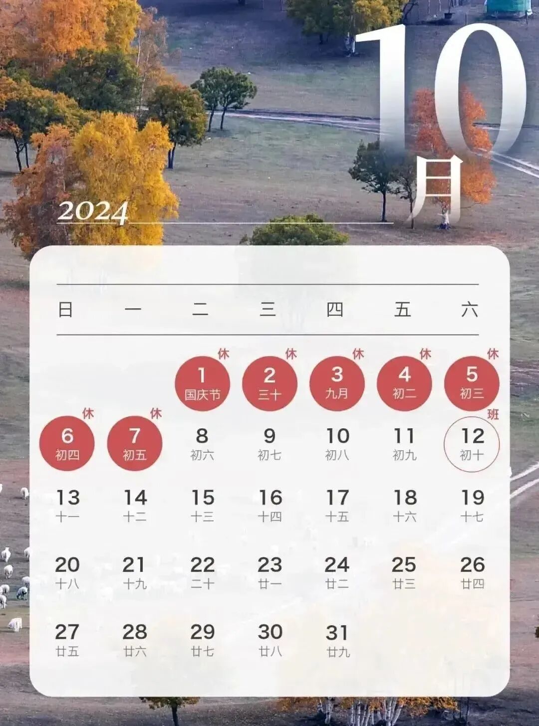 而对于2024年来说,最值得期待的莫过于中秋节和国庆节了。在这一年当中,中秋节将会在9月15日,而国庆节则会在10月1日。而这两个节日都是有非常长的假期时间,尤其是国庆节,整整七天的假期,这样简直就是可以实现各种长假的规划了。或许在这样的假期中,你可以和家人一起去远行,感受不一样的风景,或是和朋友一起出去玩,收集属于自己的故事。无论是怎样的安排,相信在这样的假期中,一定会有很多的收获和快乐,也会给自己留下美好的回忆。