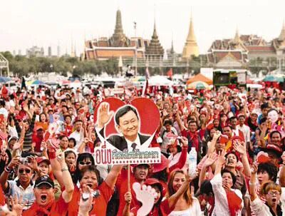 但是,支持他信的民众穿上了红衫,与穿着黄衫支持王室和军队的民众,也在街头开始了旷日持久的斗争。
