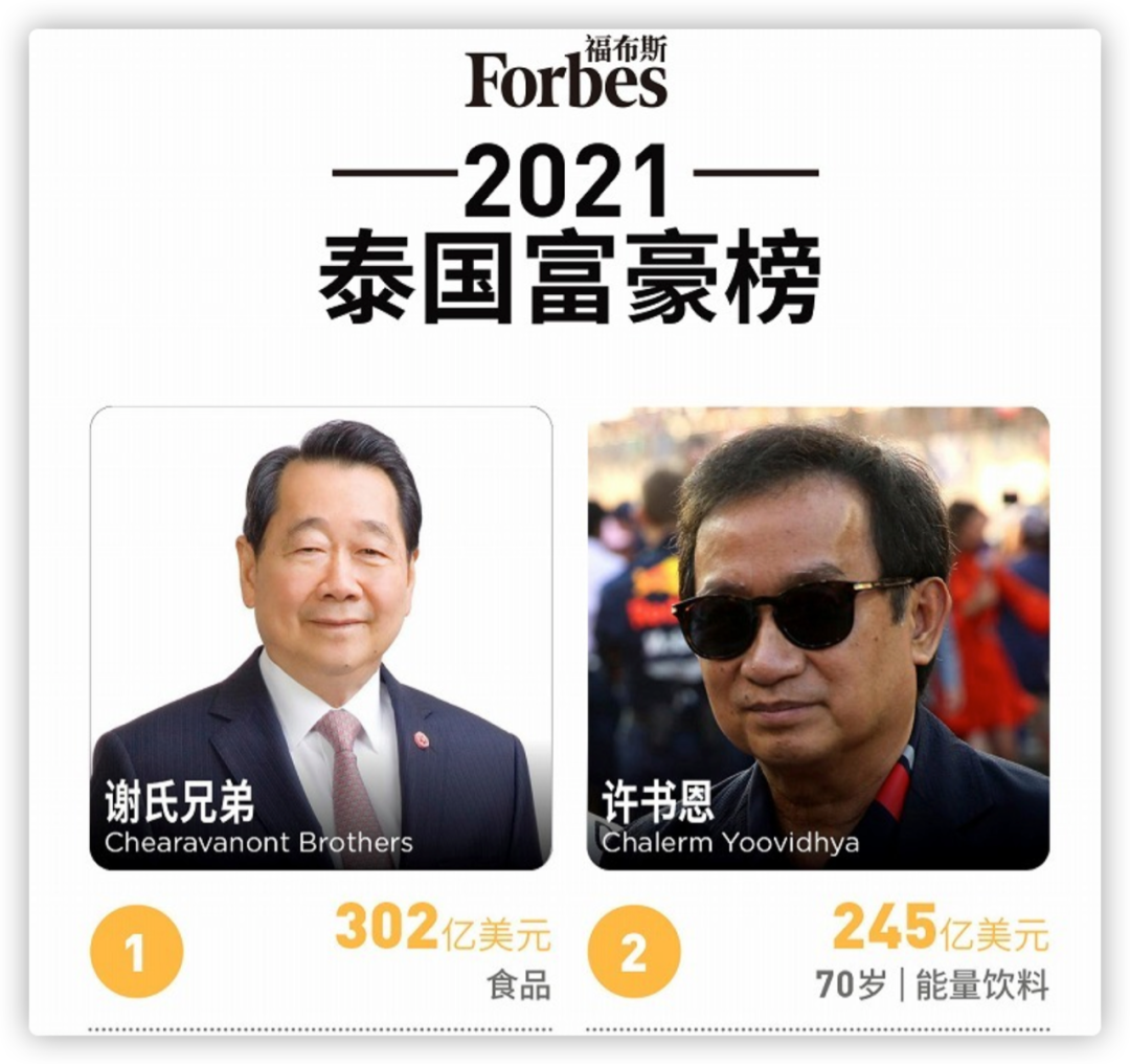 2021年泰国富豪榜出炉,华人毫无意外的占据了半壁江山。排在第一位的自然还是正大集团的谢氏家族,而排在第二位的,是拥有“红牛”的许书恩家族。