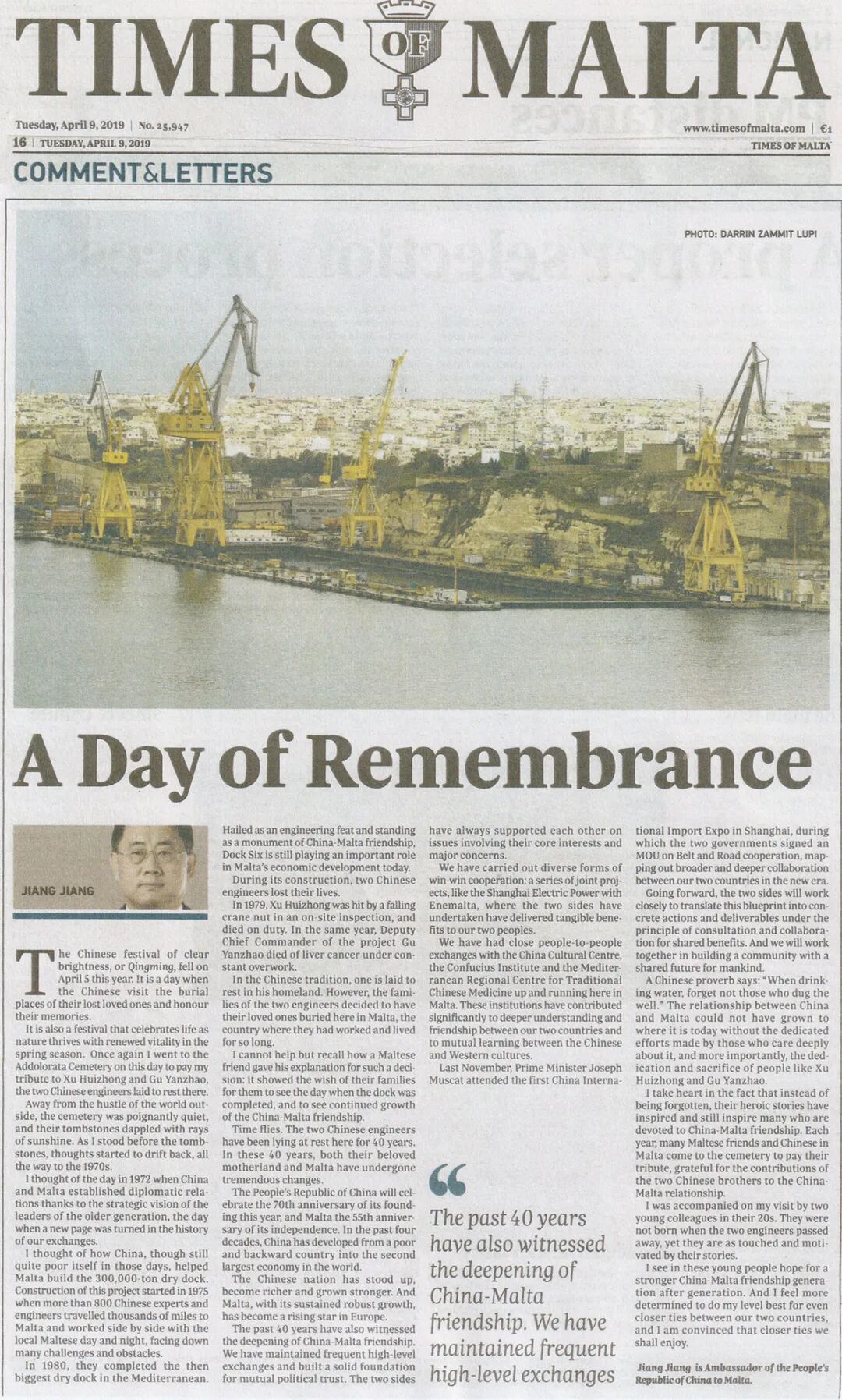 这个工程对于岛国马耳他发展经济起到了重要作用,我们还为此牺牲了两名烈士。1979年,工程师徐会仲在工作中不幸被掉下的起重机螺母击中,以身殉职。同年,工程的副总指挥谷岩昭因积劳成疾,不幸逝世。他们安葬在了马耳他,每年都会有许多当地人在他们的墓碑前献花悼念。