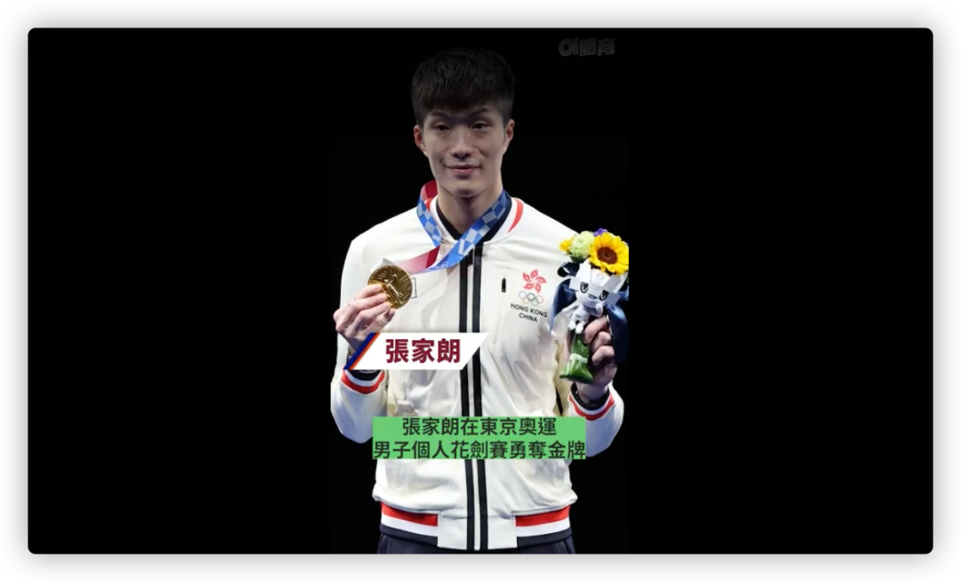 2021年7月26日,中国香港代表队的运动员张家朗,在男子个人花剑决赛上击败了上届冠军加佐罗,夺得金牌。