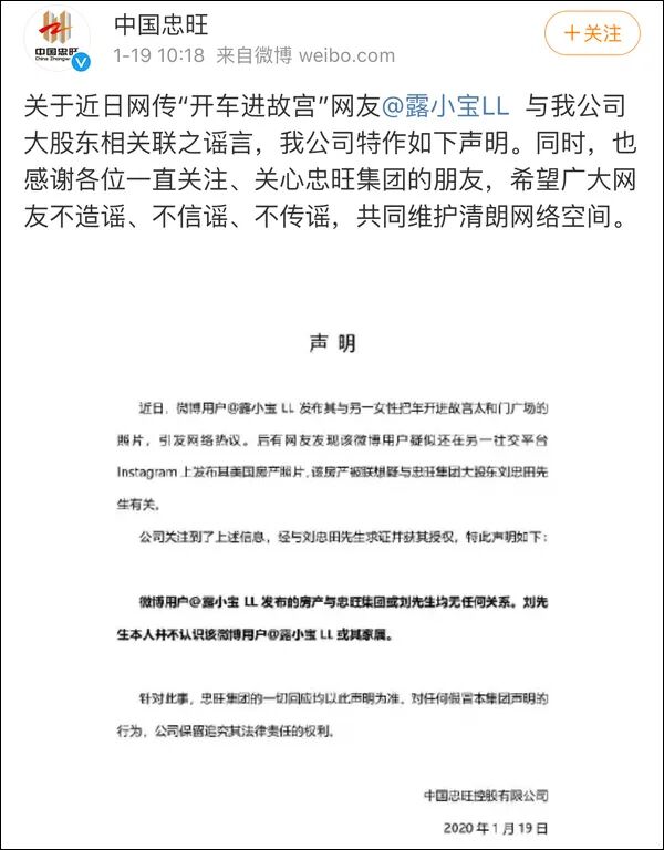 不过忠旺集团也立即出来辟谣,说刘忠田本人和其家属与高露完全不认识。