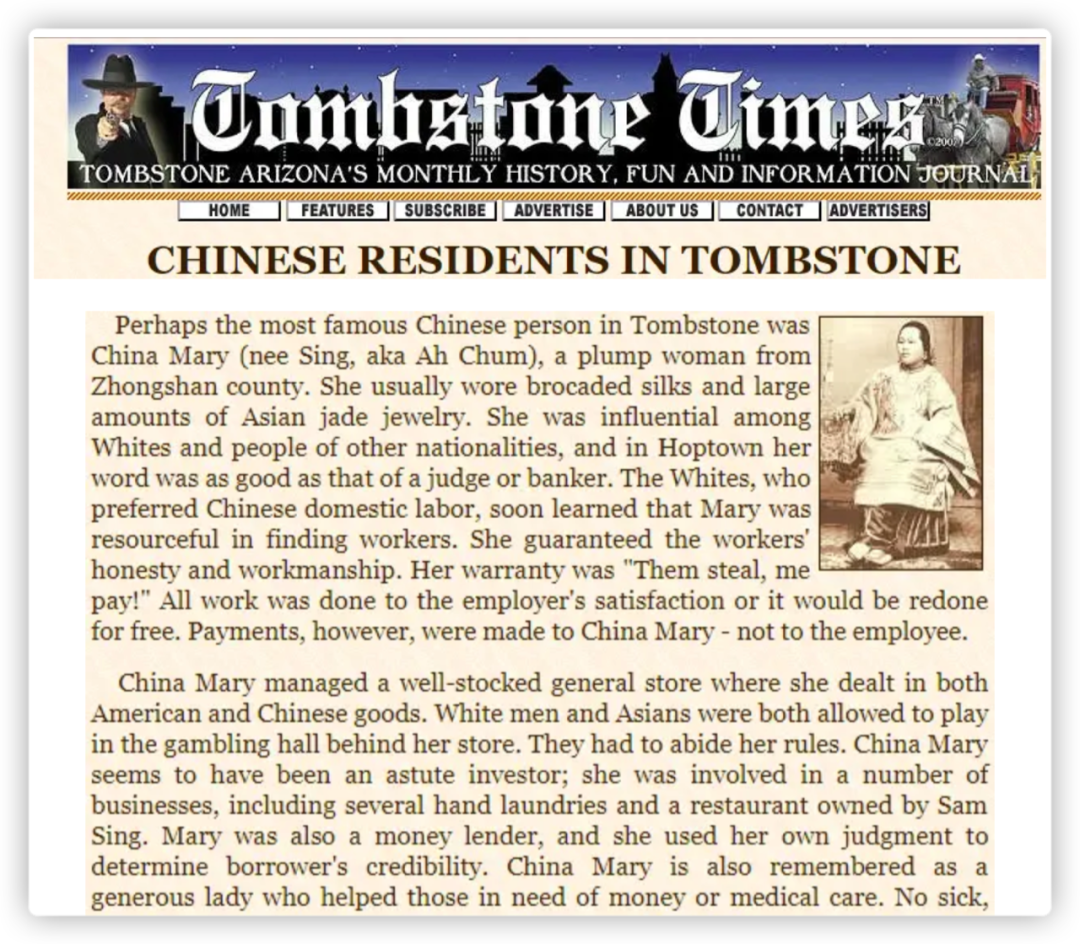 亚利桑那州旅游网站对“中国玛丽”的报道