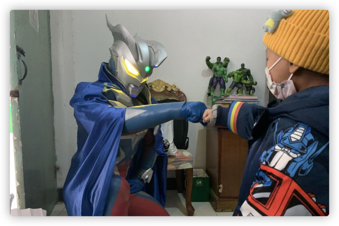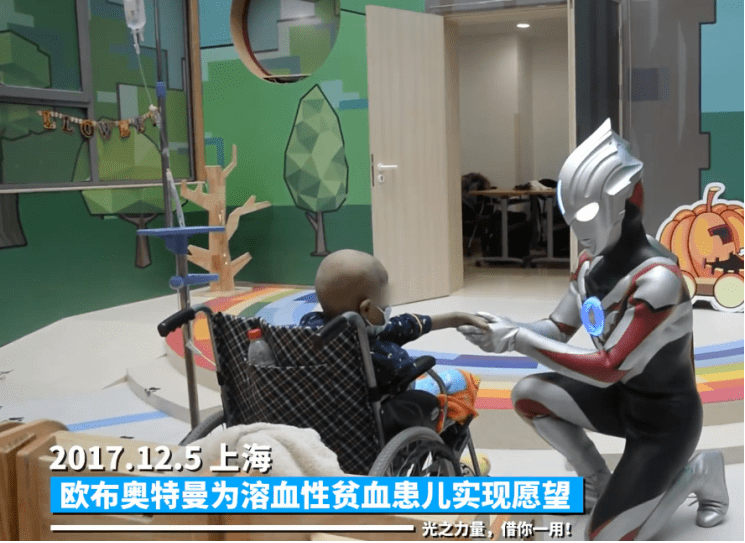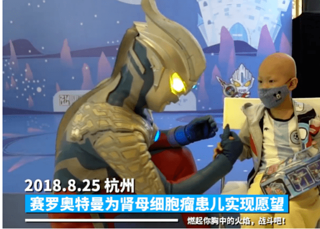 最令人感动的一幕出现在山东省肿瘤医院,一位5岁小男孩身患重病,遗愿清单里有一项就是见奥特曼。得知这个事情后,奥特曼家族的赛罗奥特曼出动“紧急任务”,从“光之国”来到山东,实现了小男孩的愿望。