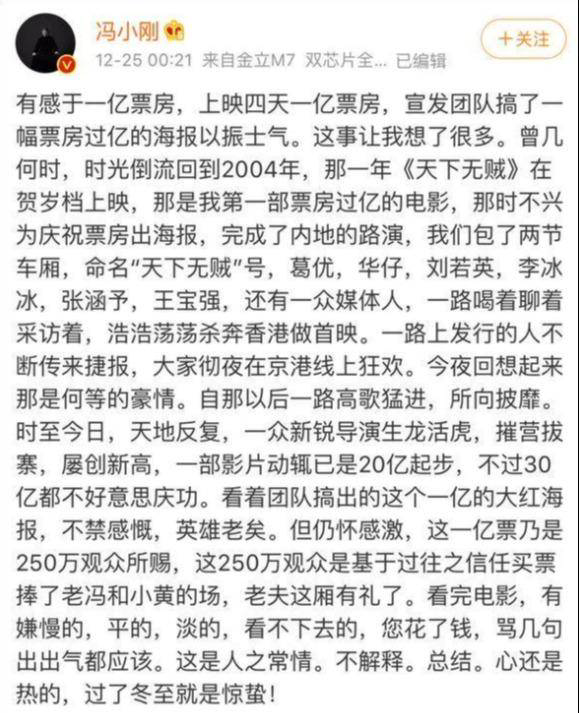 范冰冰退了,另一块金字招牌冯小刚也老了,老到了他都不得不服气的地步。