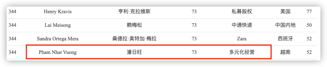 就这样这位越南人趁着苏联解体,在饥饿的乌克兰挖到了第一桶金。拿着这笔钱,他回到了越南,多年以后,他成为了第一位登上福布斯富豪榜的越南人,2021年,以73亿美元的身价,排名全球富豪榜的第344位,比富士康的老板郭台铭还要高。
