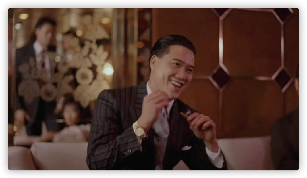 大背头、黑西装、雪茄烟、洋酒杯,在万梓良之前,没人知道一个黑社会大哥应该是什么模样,在他用这些经典的造形演绎之后,黑社会大哥就约定俗成是这个模样。