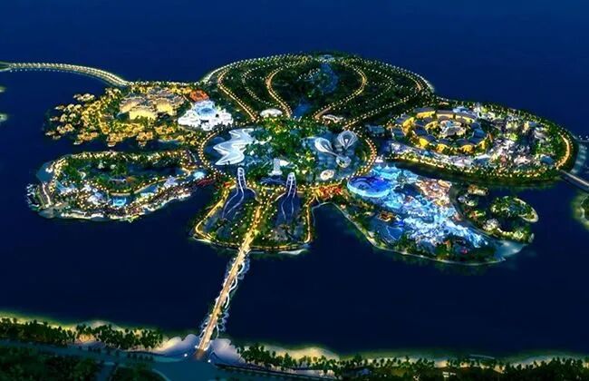 海花岛由恒大集团投资1600亿建造,请来了600多名世界顶级建筑设计大师操刀设计。岛上有会展中心、博物馆、大型商场、影视基地、海洋世界、五星级酒店……当时规划可以同时容纳11万人在岛上定居。它的豪华程度,已经超越了迪拜的世界岛,曾经一度也是地方旅游的名片。