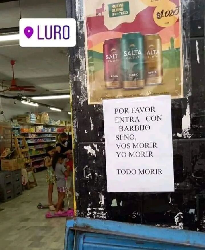 阿根廷最近的疫情也挺严重的,进入2022年以来,平均每天都是好几万的新增,最多一天新增了10万例。可还是有一些不管不顾的阿根廷人在公共场合也不佩戴口罩。无奈之下,当地一位华人超市的老板在门口贴出了告示。