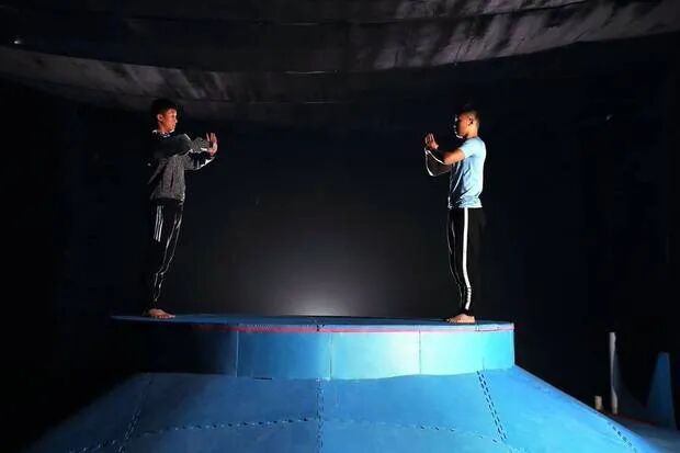 功守道赛场是一个由太极推手演变而来的竞技项目,在一个1.5米高的擂台,两名选手将对手打下擂台就得分。李连杰称之为“太极推手3.0”。