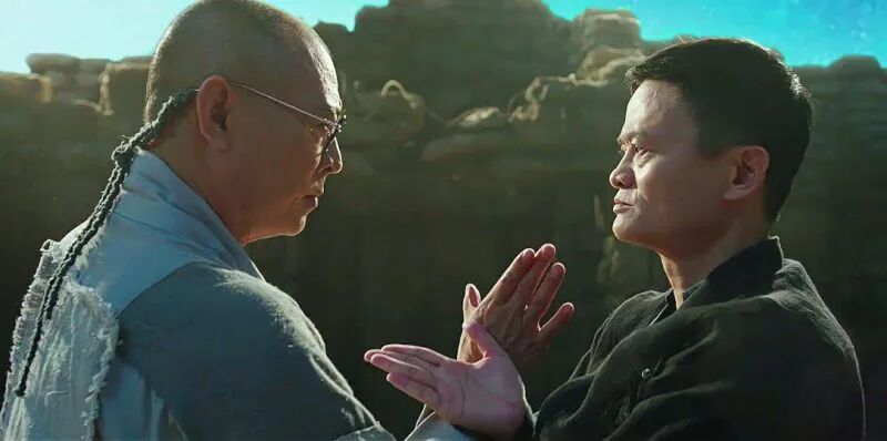 想当年,马云喊来了李连杰、甄子丹、吴京、邹市明、洪金宝、托尼.贾等一众武打巨星,陪他这位“风清扬”上演了一出“攻守道”。