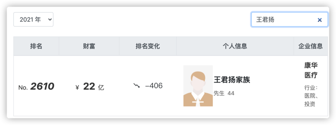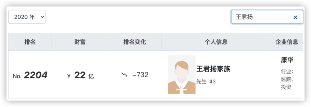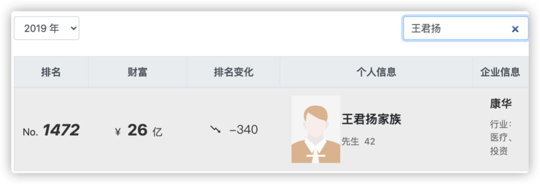 不过自从登上了富豪榜,王君扬家族的财富和排名就一直在下降。
