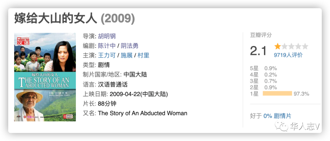 《盲山》的拍法更像是一部纪录片,它只是把真实发生过的故事,呈现出来给你看,至于如何去评价那是你的事情。而有一些作品,导演和编剧却发挥着他们“鬼才”般的想象力,硬是将拐卖人口拍成了“乡村爱情”。