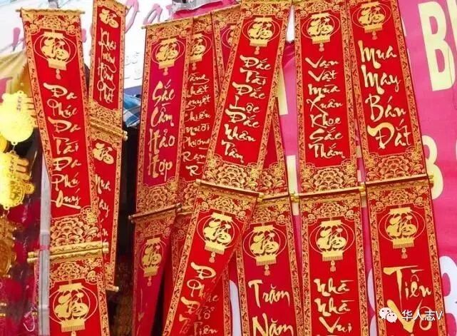 所以我们现在看到的越南文字,都是由拉丁字母组成的。越南还保留着过春节的习俗,但是春联上写的都是拉丁字母化的“国语字”,在我们看起来有点“不伦不类”,唯独保留了一个字,就是“福”。