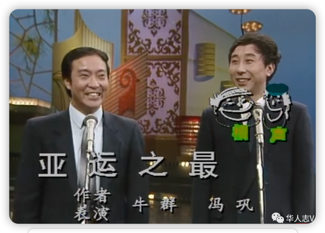 1991年春晚,冯巩和牛群的相声《亚运之最》中,调侃男足。