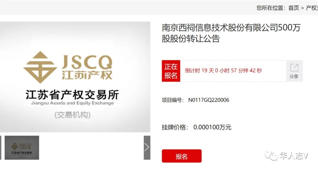2022年3月18日,南京西祠信息技术股份有限公司500万股股份挂牌转让,挂牌价格为仅为1元,挂牌截止时间为2022年4月18日。截止至2021年11月30日,南京西祠信息技术股份有限公司当月审计的公司资产总额为186.80万元,负债总额433.29万元。