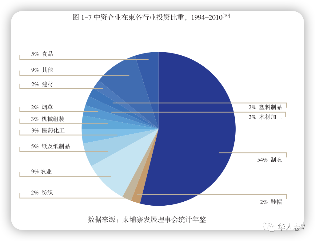 以上这些投资中有部分是属于官方的直接投资,但是中国的民间资本在柬埔寨的增长也不可小觑,在2010年之前,制衣行业是中国民间资本最多流入的区域。