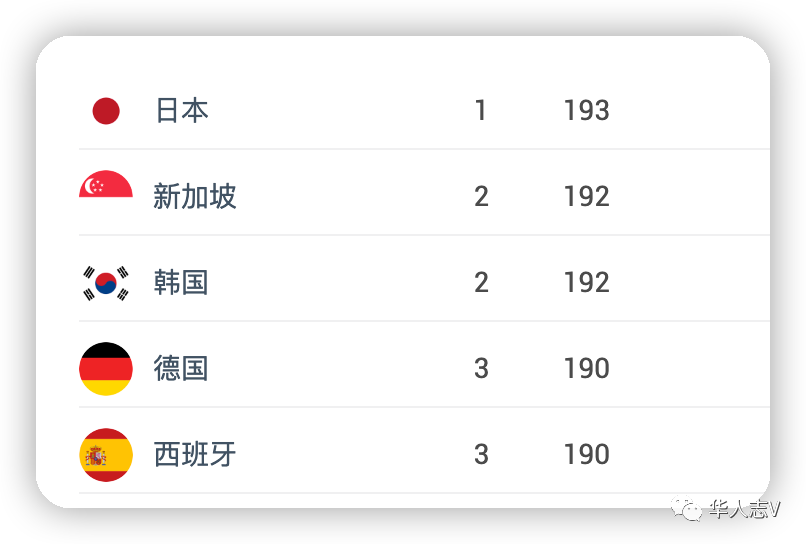 排名第一位的是日本护照,以免签数193个刷新了历史纪录,这可能是现代护照诞生以来,含金量最高的。