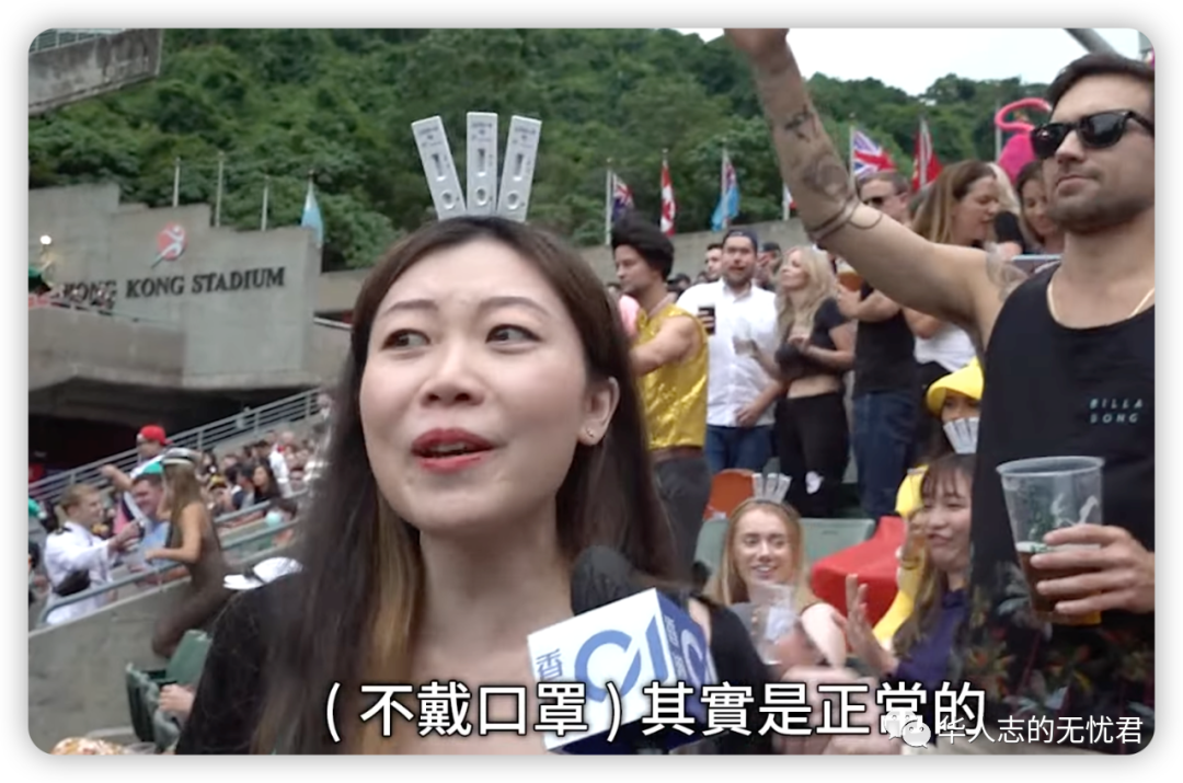 有记者在场外采访,在问到要不要戴口罩的时候,一位女观众的回答很直接:“我觉得不戴口罩很正常,香港的防疫措施已经很久了,我们只是取笑它,来到这些大型的活动,露天不是有太大风险被感染,如果有防疫限制,我一定不会再参加香港的活动,因为很影响兴致”。