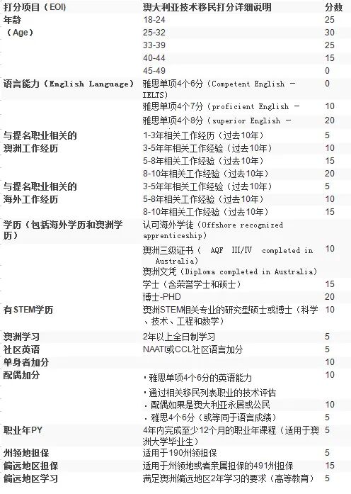 下面是澳洲技术移民的评分表,大家可以自测。