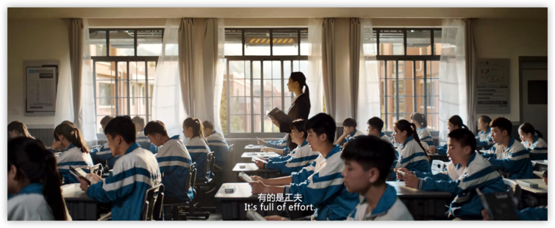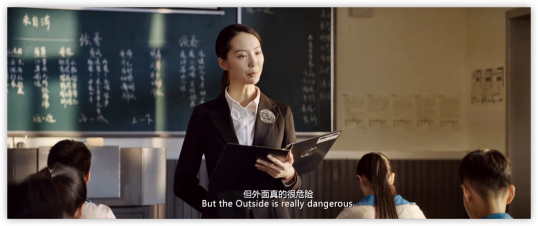 这所学校看起来跟现在普通的学校没有任何区别,学生们穿的校服,课桌和老师的授课方式几乎保持与危机前一样,黑板上还可以看到写着“朱自清”的名字,看来课本都没怎么换。