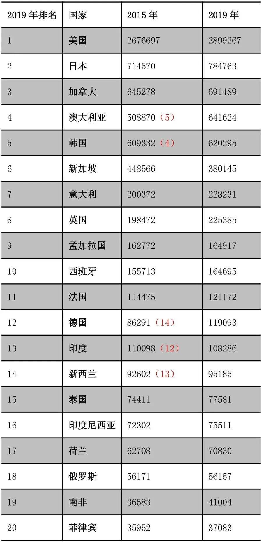 根据全球化智库与西南财经大学发展研究院研究编写的《中国国际移民报告2020》,其中的数据显示,截至2019年, 中国移民海外的人数已经达到1073万人,成为世界上第三大移民输出国,日本成为了中国人移民第二多的国家,有784763人,第一名是美国,有2899267人。