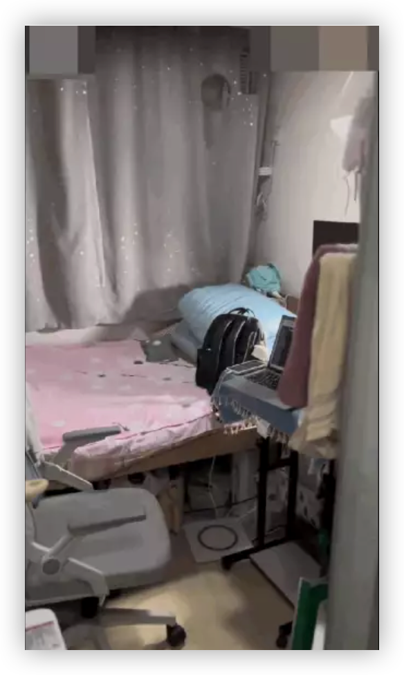 在视频中,这位内地来港留学生自称是港大的博士,她给大家看了每个月花5000港币租的房子——一个只有80呎(不到8平米)的劏房。