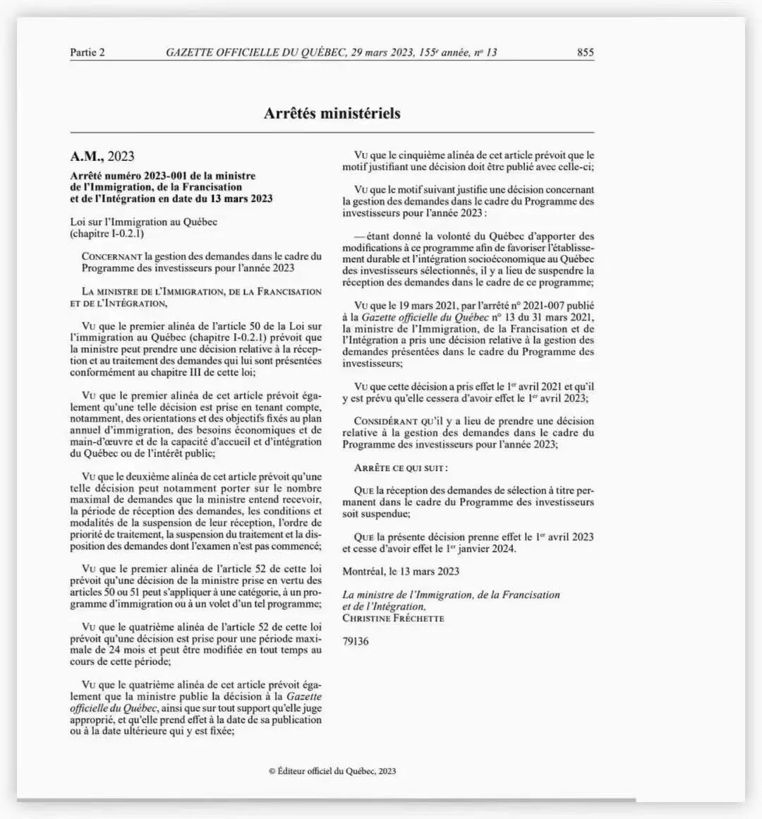 近日,加拿大魁省投资移民宣布再度暂停一年,这个加拿大唯一一个纯投资的移民项目,已经因为疫情暂停了三年,本来按照之前的加拿大官方的说法,是要在2023年4月1日重启的。