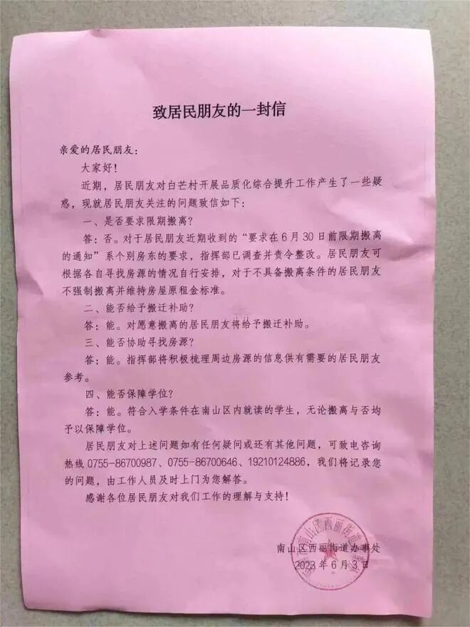 尽管后来当地政府出来说这属于个别房东的个别行为,已经勒令整改,目前并不会强迫大家搬家,并且如果搬的话政府还将发放补贴。并且无论搬离与否,符合就读条件的都会保留学位。