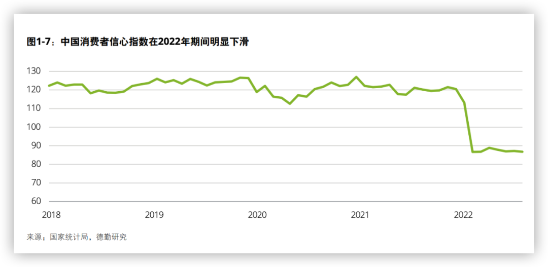 根据全球最大会计师事务所德勤的《2023中国消费者洞察与市场展望白皮书》显示,2022年之后国内居民的消费信心明显下滑。社会消费品零售总额自2021年下半年开始增速明显放缓并持续波动。