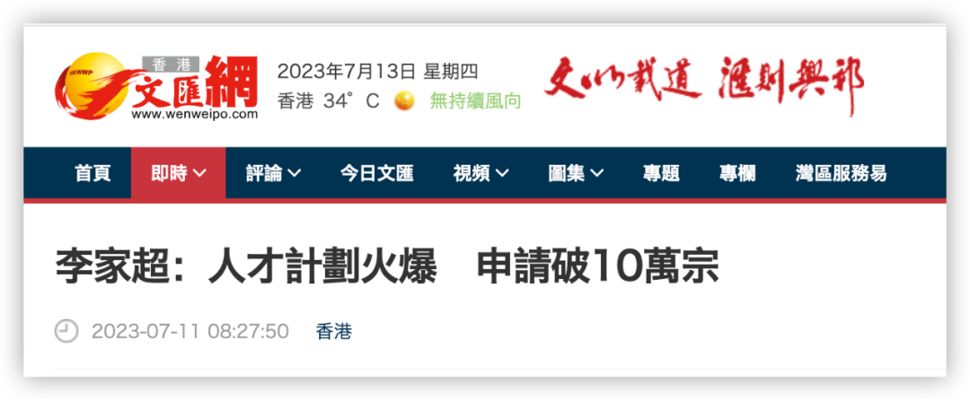 记者会上,李家超还透露了一个数字,那就是最近半年时间,香港入境处已经收到了超过10万宗的人才引进申请。